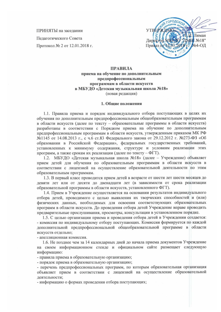 2. Правила приема по предпрофессиональным программам