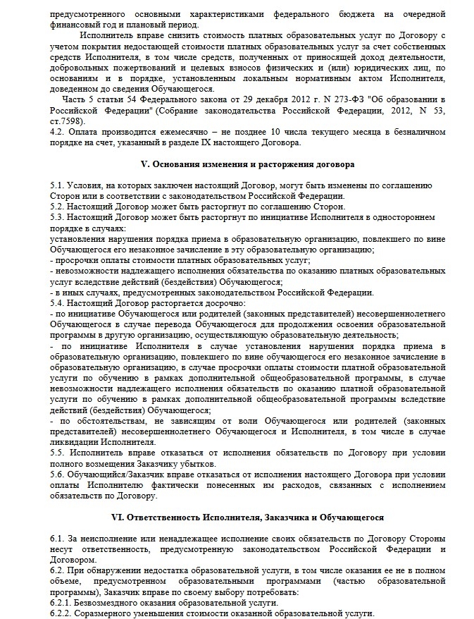10. Образец договора об оказании образовательных услуг за счет средств физического и (или) юридического лица